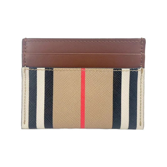 Burberry Sandon Tan Canvas Check Printed Leather Slim Card Case Wallet