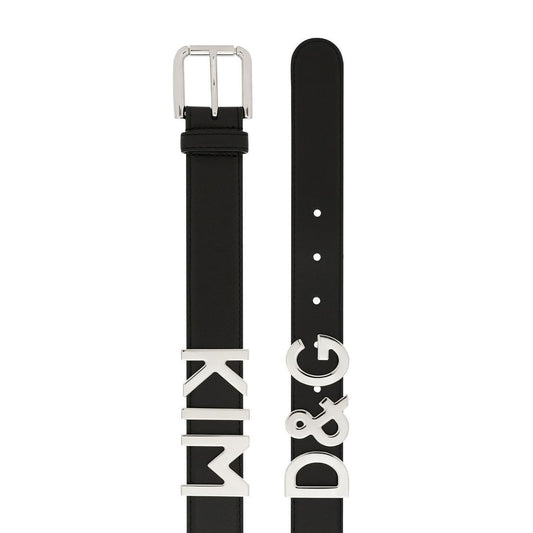 Dolce & Gabbana Black Patent Leather Logo Metal Waist Buckle Belt
