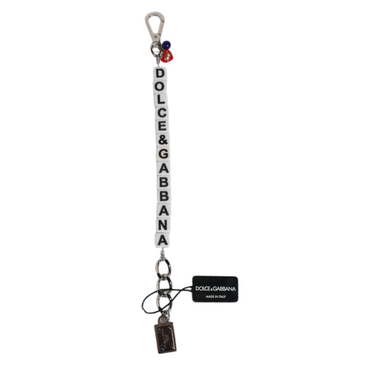 Dolce & Gabbana Silver Tone Brass Beaded Shell DG Logo Pendant Bracelet