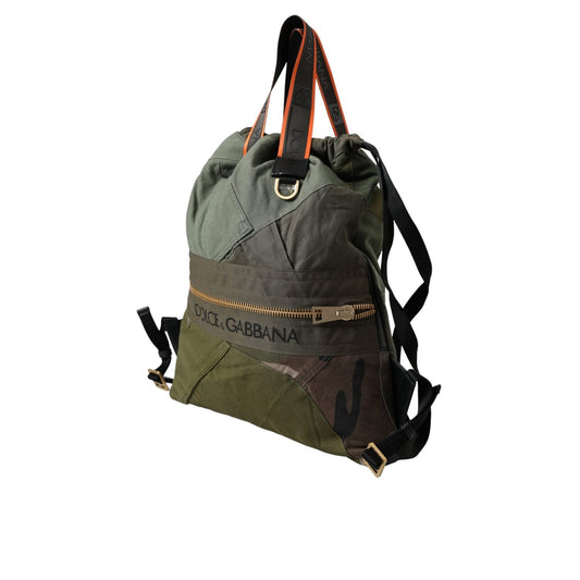 Dolce & Gabbana Military Green Patchwork Rucksack Backpack Bag