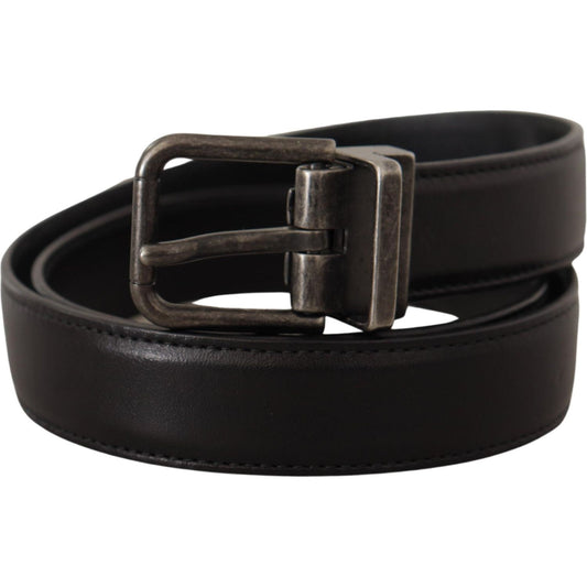 Dolce & Gabbana Black Leather Formal Silver Metal Buckle Belt