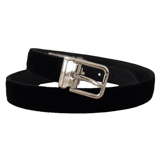 Dolce & Gabbana Black Velvet Silver Tone Metal Buckle Belt