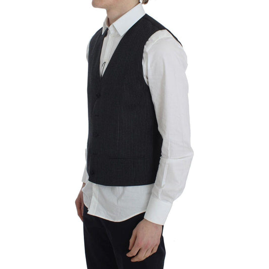 Dolce & Gabbana Gray Striped Wool Single Breasted Vest