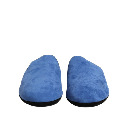 Dolce & Gabbana Blue Suede Capra Slides Flat Slipper Shoes