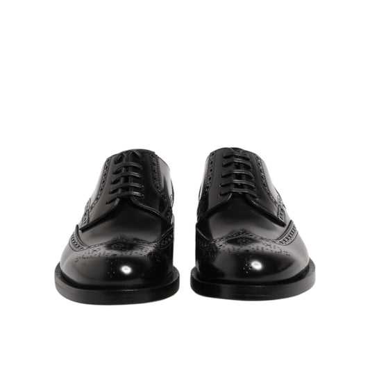 Dolce & Gabbana Black Leather Derby Wingtip Formal Shoes