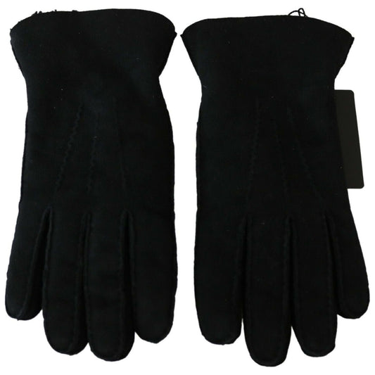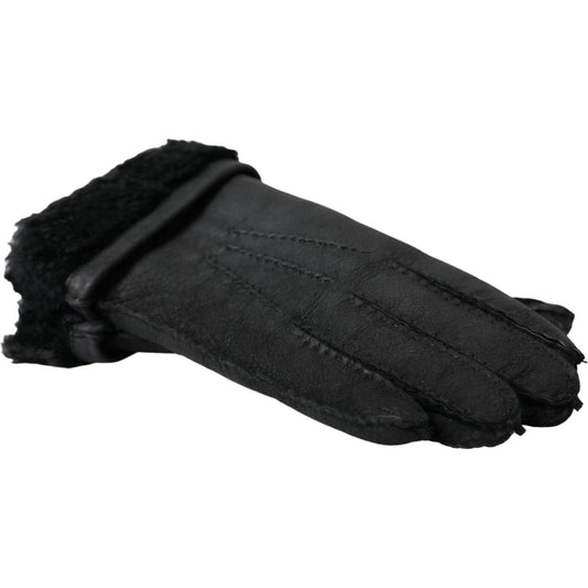 Dolce & Gabbana Black Leather Fur Short Hands Mitten Men Gloves