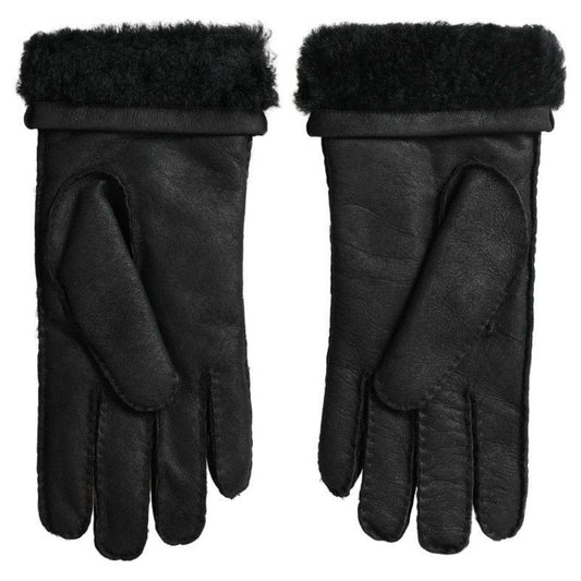 Dolce & Gabbana Black Leather Fur Short Hands Gloves