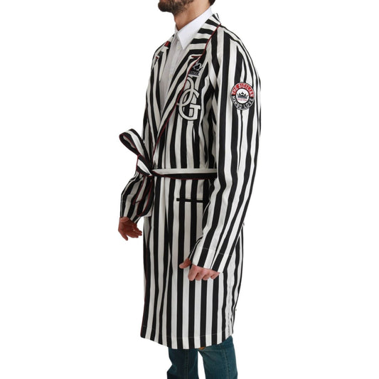 Dolce & Gabbana White Striped Cotton Robe Coat Wrap Jacket