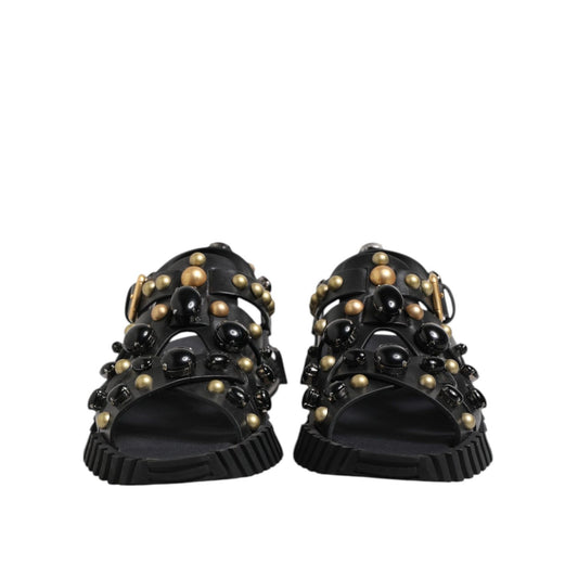 Dolce & Gabbana Black Leather Studded Ankle Strap Sandals Shoes