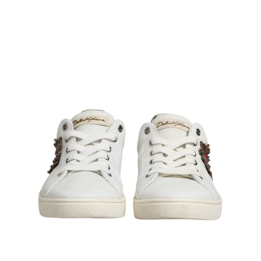 Dolce & Gabbana White Gold Crystal Portofino Sneakers Shoes