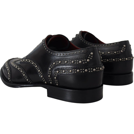 Dolce & Gabbana Black Leather Derby Dress Studded Shoes