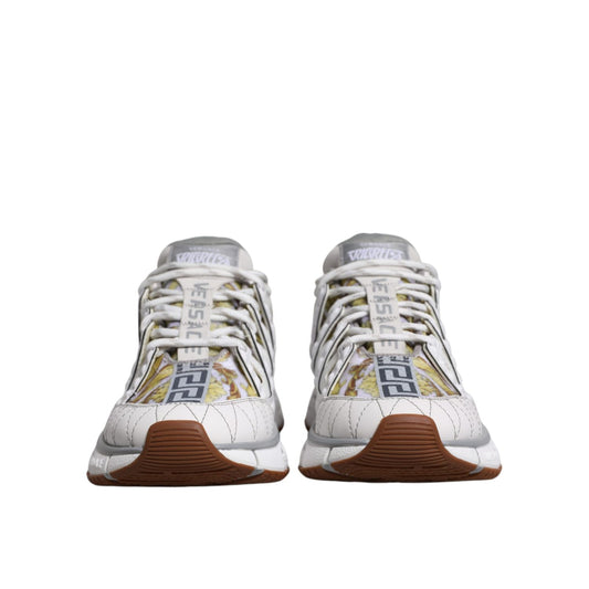 Versace White Trigreca Barocco Print Low Top Sneakers Shoes