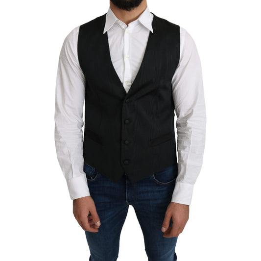 Dolce & Gabbana Black Striped Wool Single Breasted Vest