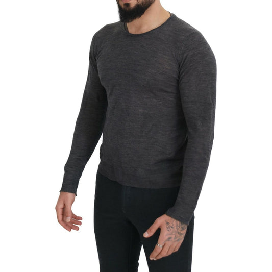 Dolce & Gabbana Black Gray Wool Logo Pullover Sweater