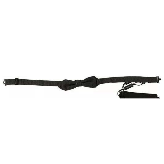 Dolce & Gabbana Gray Dotted Silk Adjustable Neck Bow Tie