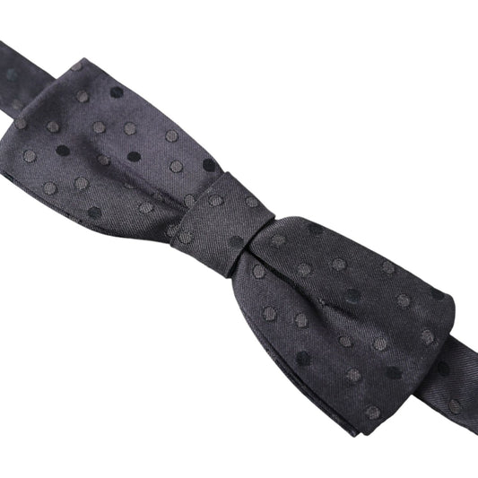 Dolce & Gabbana Gray Dotted Silk Adjustable Men Neck Papillon Bow Tie