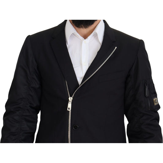 Dolce & Gabbana Black Wool Full Zip Long Sleeves Jacket