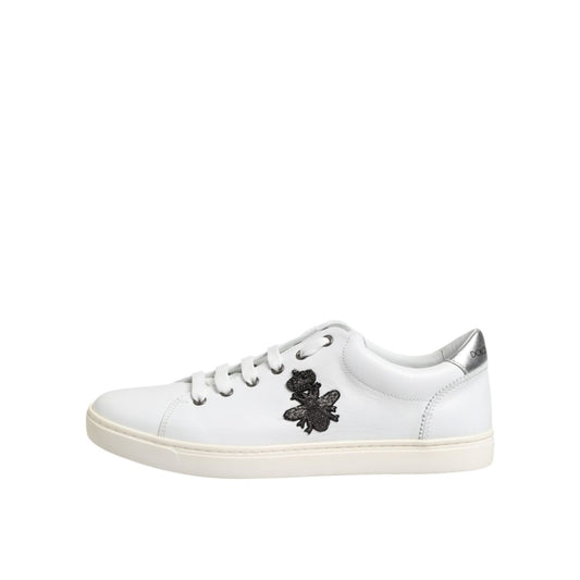 Dolce & Gabbana White Crown Bee Leather Low Top Sneakers Shoes