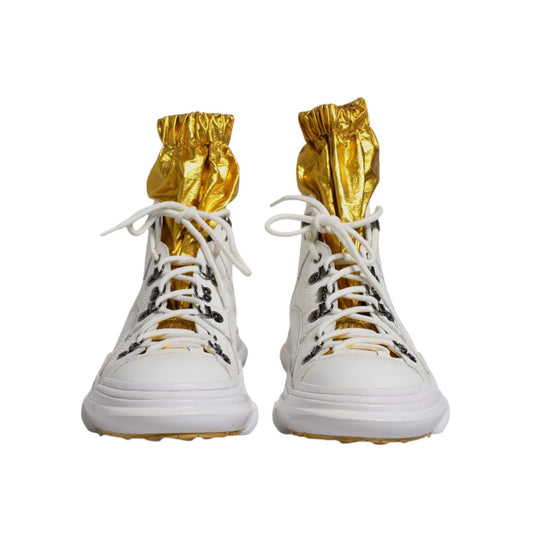 Dolce & Gabbana Gold White Logo Low Top Sneakers Shoes