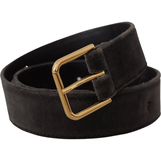 Dolce & Gabbana Brown Velvet Gold Tone Logo Metal Waist Buckle Belt