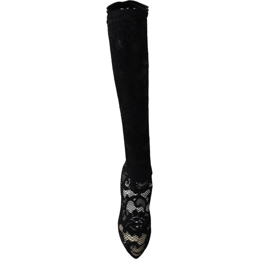 Dolce & Gabbana Black Stretch Socks Taormina Lace Boots Shoes