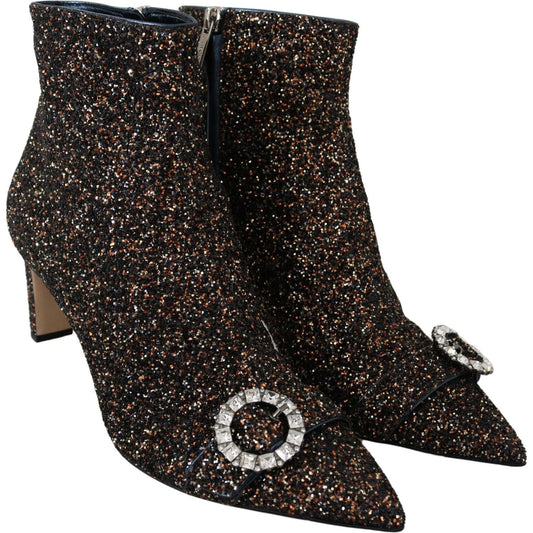Dolce & Gabbana Black Crystal Mary Janes Booties Shoes
