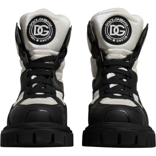 Dolce & Gabbana Black White Padded Mid Calf Lace Up Boots Shoes