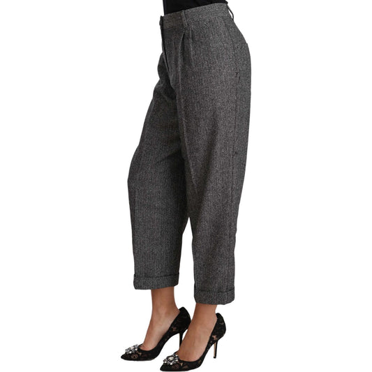 Dolce & Gabbana Gray Wool Pleated Cropped Trouser Pants