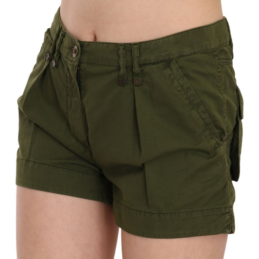 PLEIN SUD Green Mid Waist 100% Cotton Mini Shorts