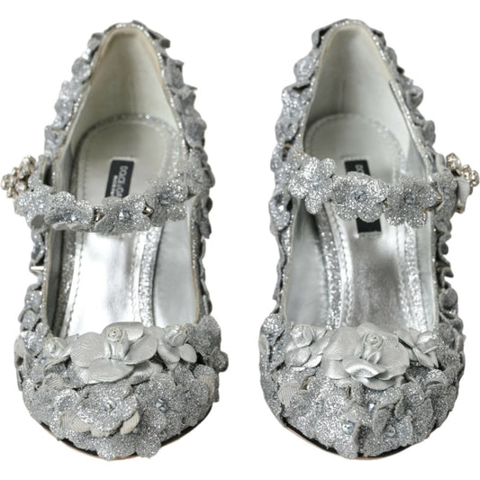 Dolce & Gabbana Silver Floral Crystal Mary Jane Pumps Shoes