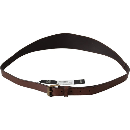 PLEIN SUD Brown Wide Leather Rustic Gold Metal Buckle Dark