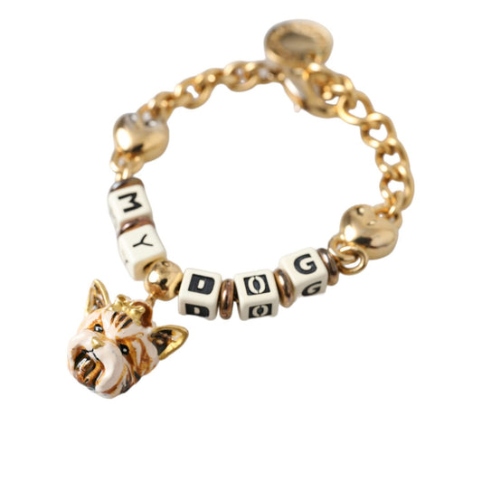 Dolce & Gabbana Gold Tone Brass Chain MY DOG Heart Bracelet