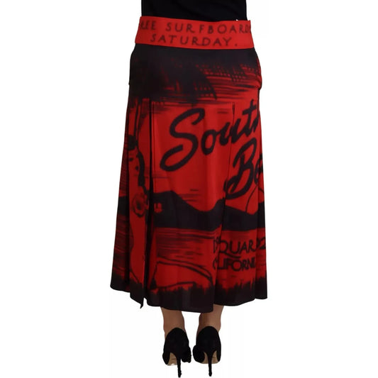 Dsquared² Red Printed High Waist A-line Pleated Midi Skirt