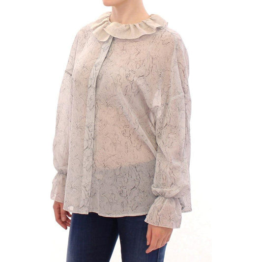 Dolce & Gabbana Black Key Floral Print Silk Blouse Top