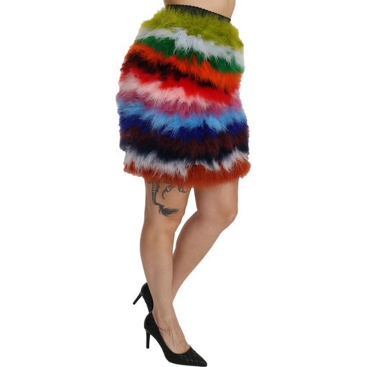 Dolce & Gabbana Red Blue High Waist Mini Feather Skirt