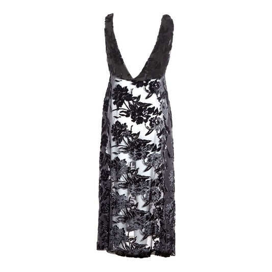 Dolce & Gabbana Black Sunflower Print Nylon A-line Midi Dress