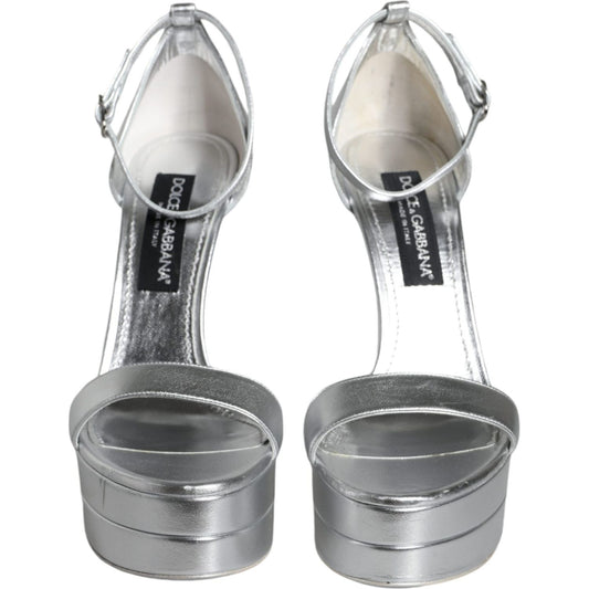 Dolce & Gabbana Metallic Silver Leather Keira Platform Sandals Shoes