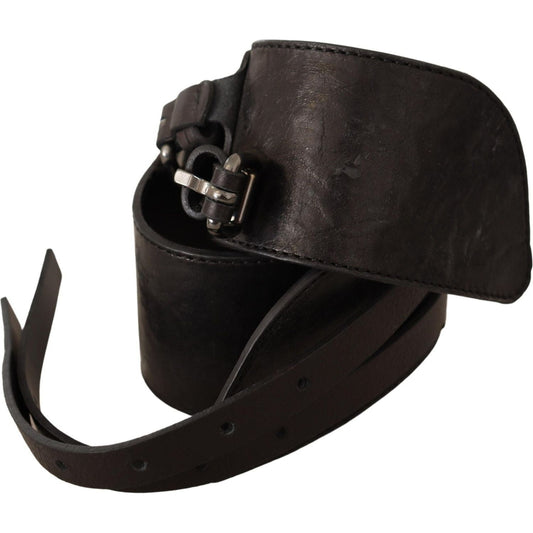 Costume National Red Black Leather Black Logo Buckle Blood Belt