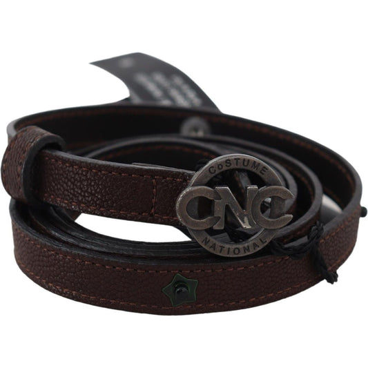Costume National Brown Leather Skinny Round Buckle Belt