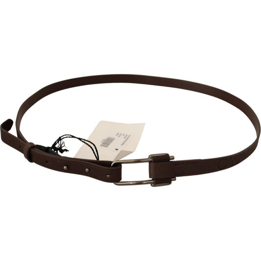 Costume National Brown Genuine Leather Silver Buckle Belt