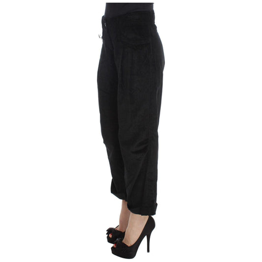 Ermanno Scervino Black Velvet Cotton Capri Bootcut Pants