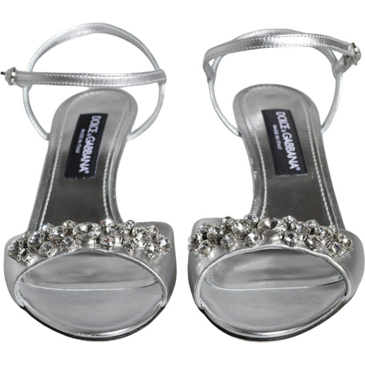 Dolce & Gabbana Silver Keira Leather Heels Sandals Shoes