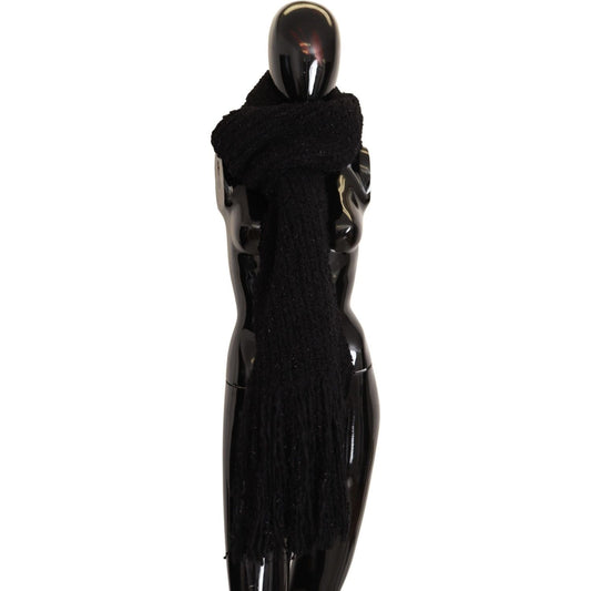 Dolce & Gabbana Black Wool Knitted Wrap Foulard Fringe Scarf
