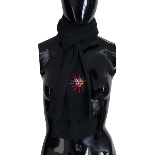 Dolce & Gabbana Black Virgin Wool Knitted Unisex Warmer Shawl Scarf