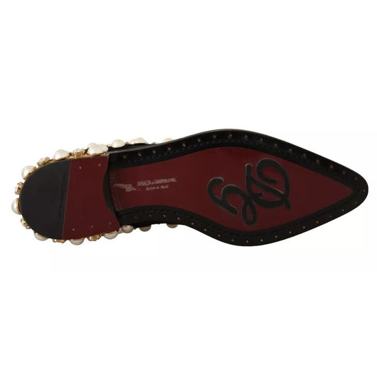 Dolce & Gabbana Black Gold Bianca Faux Pearl Sandals