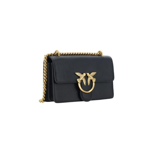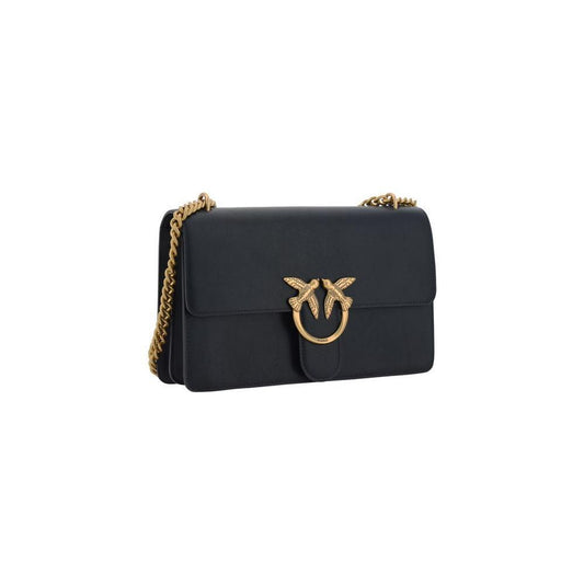 PINKO Black Calf Leather Bos Taurus Shoulder Bag