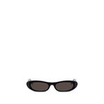 Sunglasses by Saint Laurent, cut-out design, thin acetate frame, iconic brand signature etched on side temples, frame compatible with corrective lenses.
