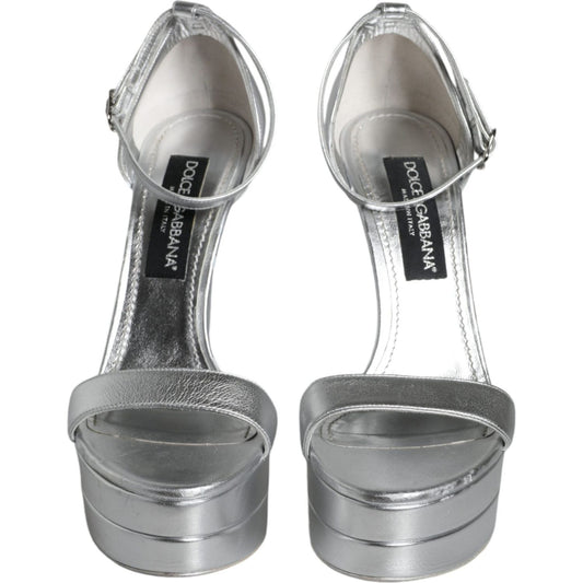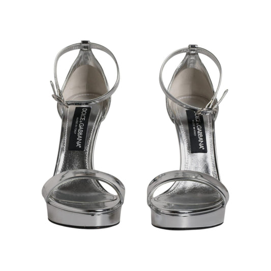 Dolce & Gabbana Silver Keira Leather Heels Sandals Shoes
