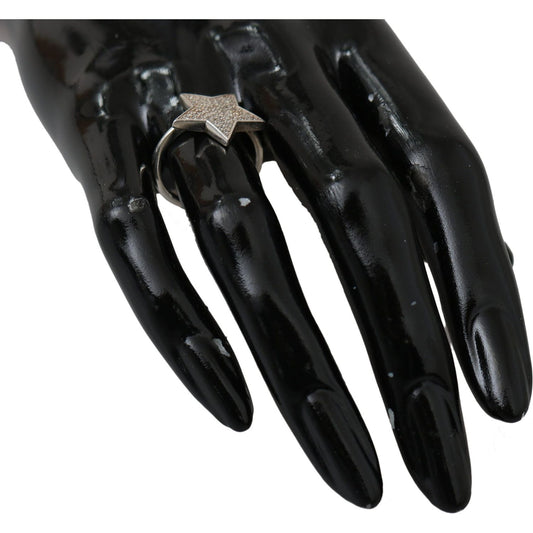 精致黑色 CZ 水晶纯银戒指