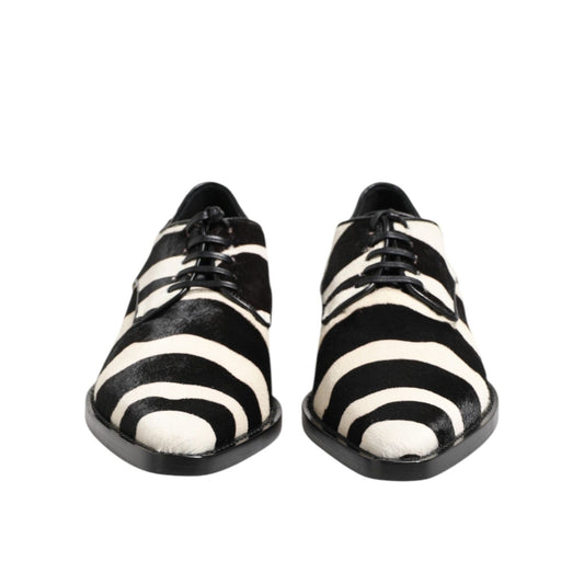 Dolce & Gabbana Black White Zebra Pony Fur Dress Shoes
